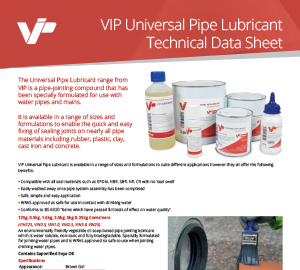 A VIP Universal Pipe Lubricant egy csőillesztő vegyület, amelyet kifejezetten vízvezetékekhez és vezetékekhez való használatra terveztek.