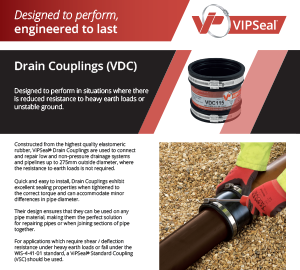 A VIPSeal® lefolyócsatlakozók ugyanabból az elasztomer gumihüvelyből készülnek, mint a szabványos csatlakozók, de rozsdamentes acél nyírószalag nélkül kaphatók.