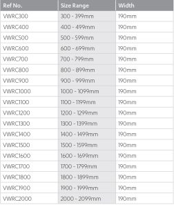 VIPSeal VWRC Wraparound couplings are site specific and therefore made to order. Size indication in the table above is for pricing purposes only.